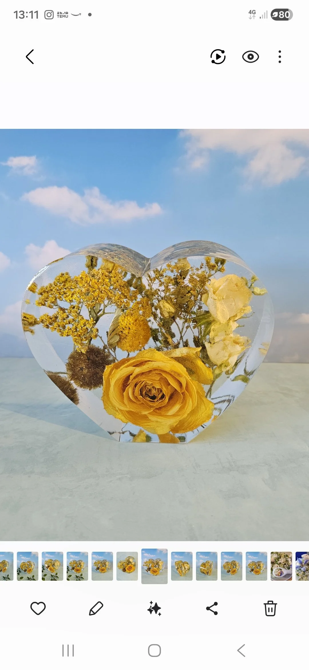 Some petals are thin and sometimes seem spotted and translucent. This is a natural result of petals submerged in wet resin but they still look beautiful.